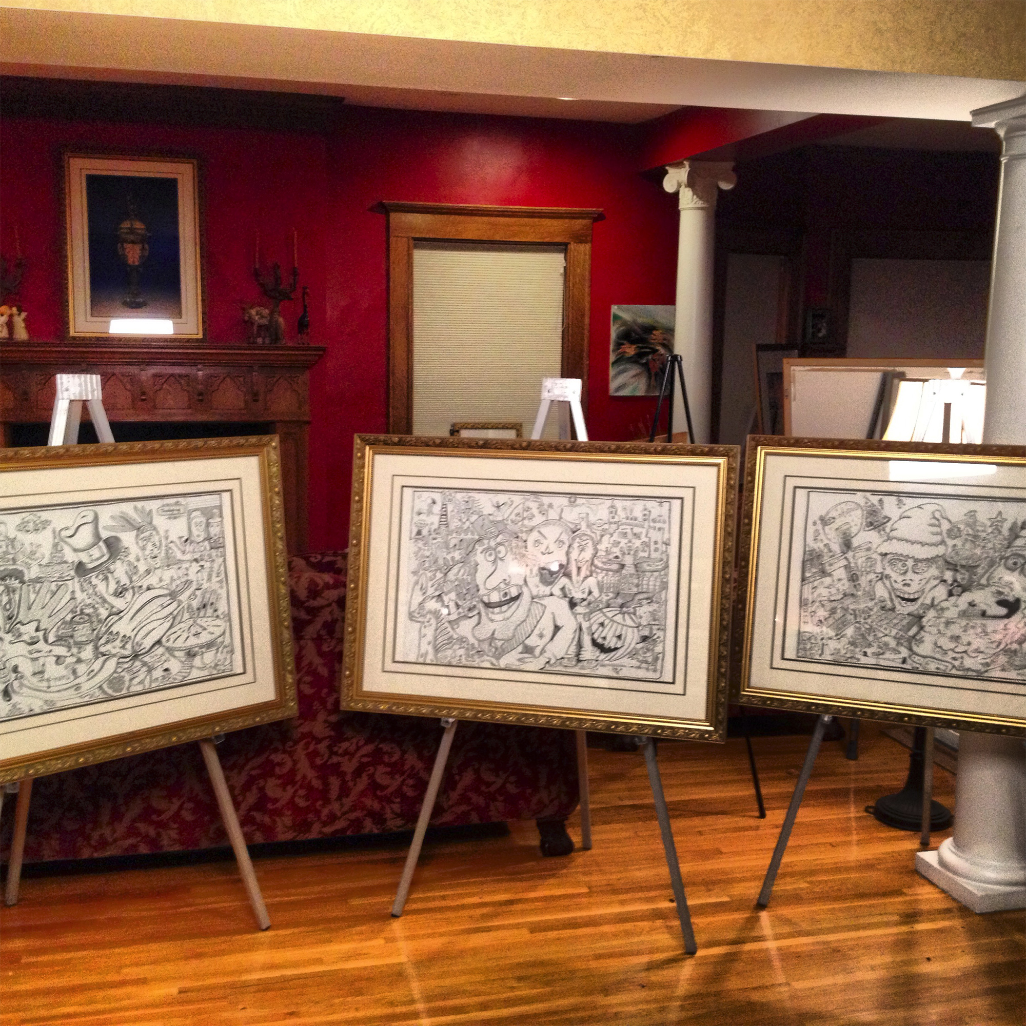 In the creative spaces of the “Historic Summit Atelier” many great pieces of art have been created. There does not seem to be a specific place where my artwork begins or ends. Sometimes I find myself being disciplined and draw at my crafted European drawing table. Other times I am lying on the couch in front of the fireplace, on the porch listening to birds, in a chair arms length away from a German stout, or even while I watch TV in bed. I can’t say there is a magical spot I have designated to work. It seams like when I want to create I just do it where I feel most comfortable that day. Many people ask me, “How do you know when a piece of artwork is completed?” I say, “When I finally get around to framing them.” It is at that time, I know the artwork is complete and I have done my job.