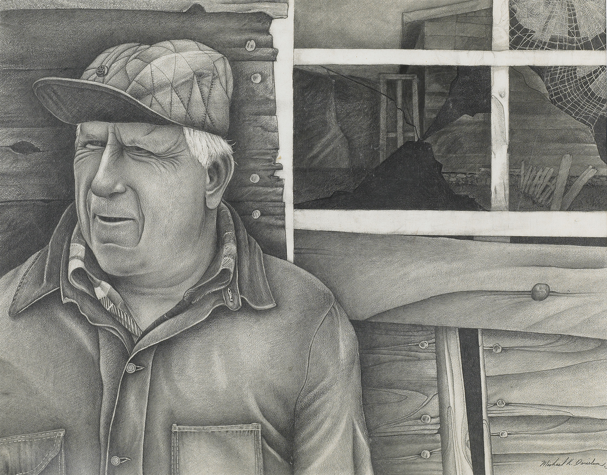 The pencil drawing above is a portrait of a farmer named Chucky – “Farmer in the City.” He lived behind my home in a small shack with no running water or electricity on the edge of the city in South St. Paul, MN. This was one of the last remaining farmlands still standing close to the city. As a child these lands became my playgrounds. The suburbs have taken their grasp on these calm natural lands and plows have destroyed and replaced them with paved tar parking lots. Where once stood this farm nestled amongst the ponds, woods, and valleys, now sits a department store with many memories buried below. Sadness comes to my thoughts as I capture this feeling in Chucky.